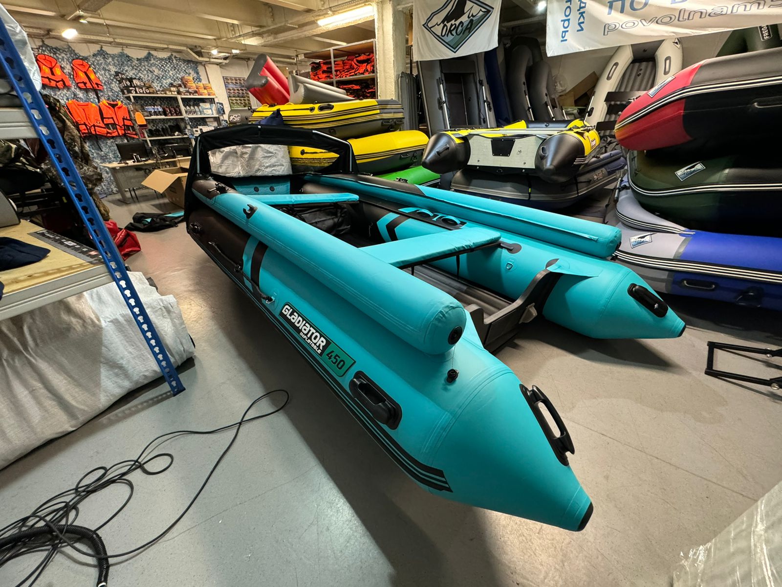 Лодка Gladiator E 420 X разработана специально, чтобы выдерживать большие нагрузки. Наличие фальшборта и увеличенная ширина кокпита - отличительные особенности данной серии. Расширенная комплектация и надувное дно низкого давления создают более комфортные условия эксплуатации. По вместимости лодка Гладиатор E 420 X рассчитана на компанию из 6 человек, грузоподъемность - 900 кг. На стационарный транец толщиной 35 мм можно установить мотор мощностью до 40 л.с.